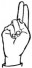 На ћирилици написано ФИЛОТИЈЕ ШОГОЉАЦ састоји се из 15 слова [?]. Исписано ћириличном једноручном азбуком за глувонеме: